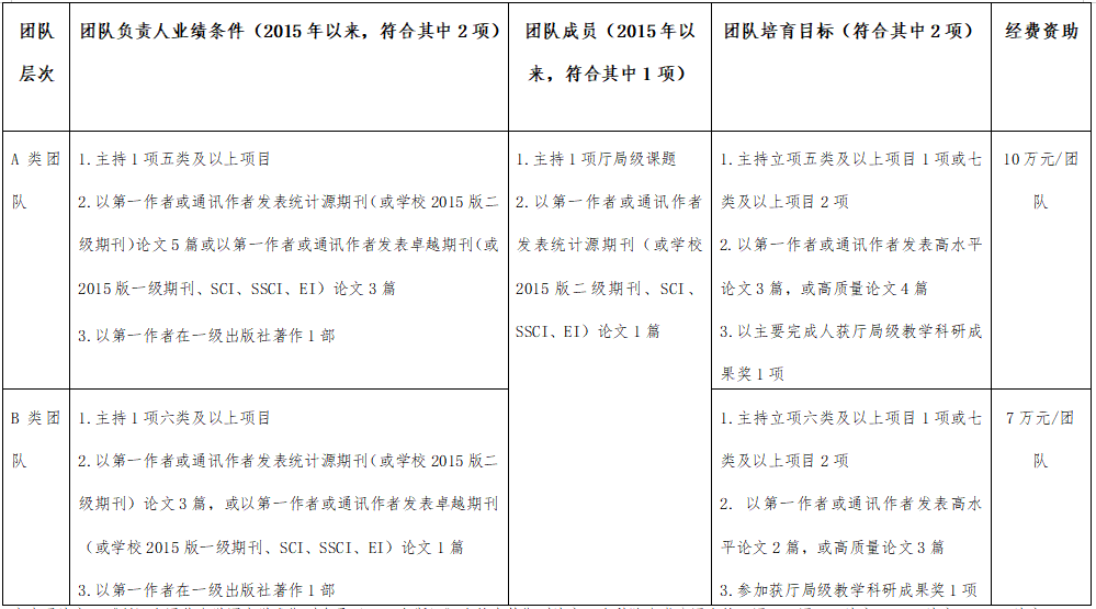 2.科研团队应注重学术带头人、学术骨干和中青年教师相结合,团队规模原则上不超过5人。