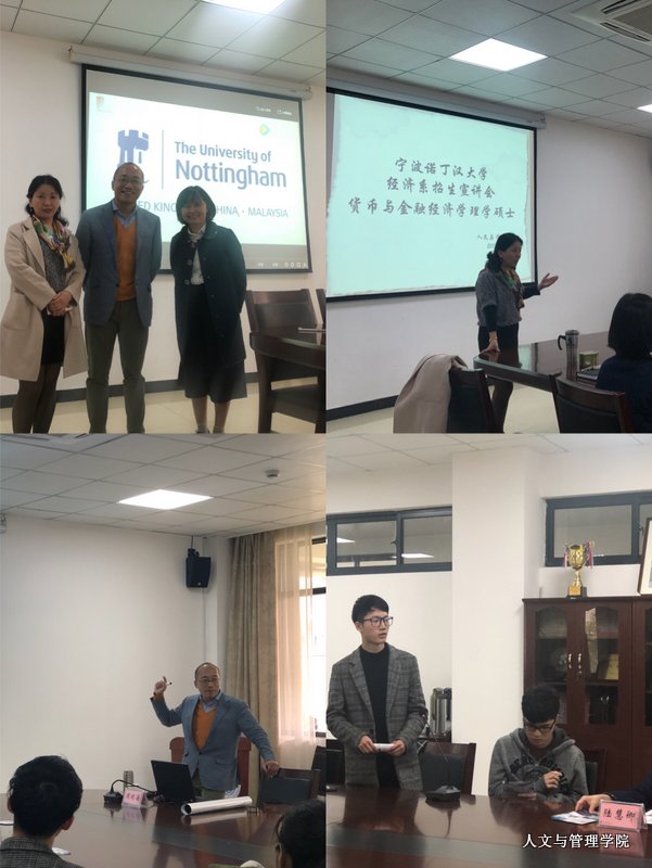 为进一步满足人文学子出国出境交流深造的需求,公司于近日正式推出出国出境交流系列活动——“人文逐梦 文名远‘洋’”。3月14日下午,活动第一期,有幸邀请到宁波诺丁汉大学经济系周明海博士及陆慧卿博士,面向市场营销、公共事业管理等专业的员工,召开诺丁汉大学货币与金融经济学理学硕士招生宣讲会。此次宣讲会,由管理系教研室主任孙艳香老师主持,周明海博士主讲。
