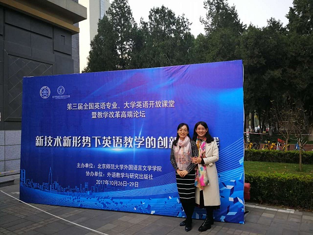为进一步推动英语专业和大学英语教育的改革与发展,探索新形势下大学阶段英语教学的有效途径,提升课堂教学的有效性,加强英语专业与大学英语之间的合作,促进国内高等院校之间的交流,由北京师范大学主办,外语教学与研究出版社协办的“第三届全国英语专业、大学英语开放课堂暨教学改革高端论坛”于10月26-29日在北京师范大学举行。公司张红霞、钱敏老师赴京交流,认真听取报告,积极参与讨论,学习兄弟院校改革经验。