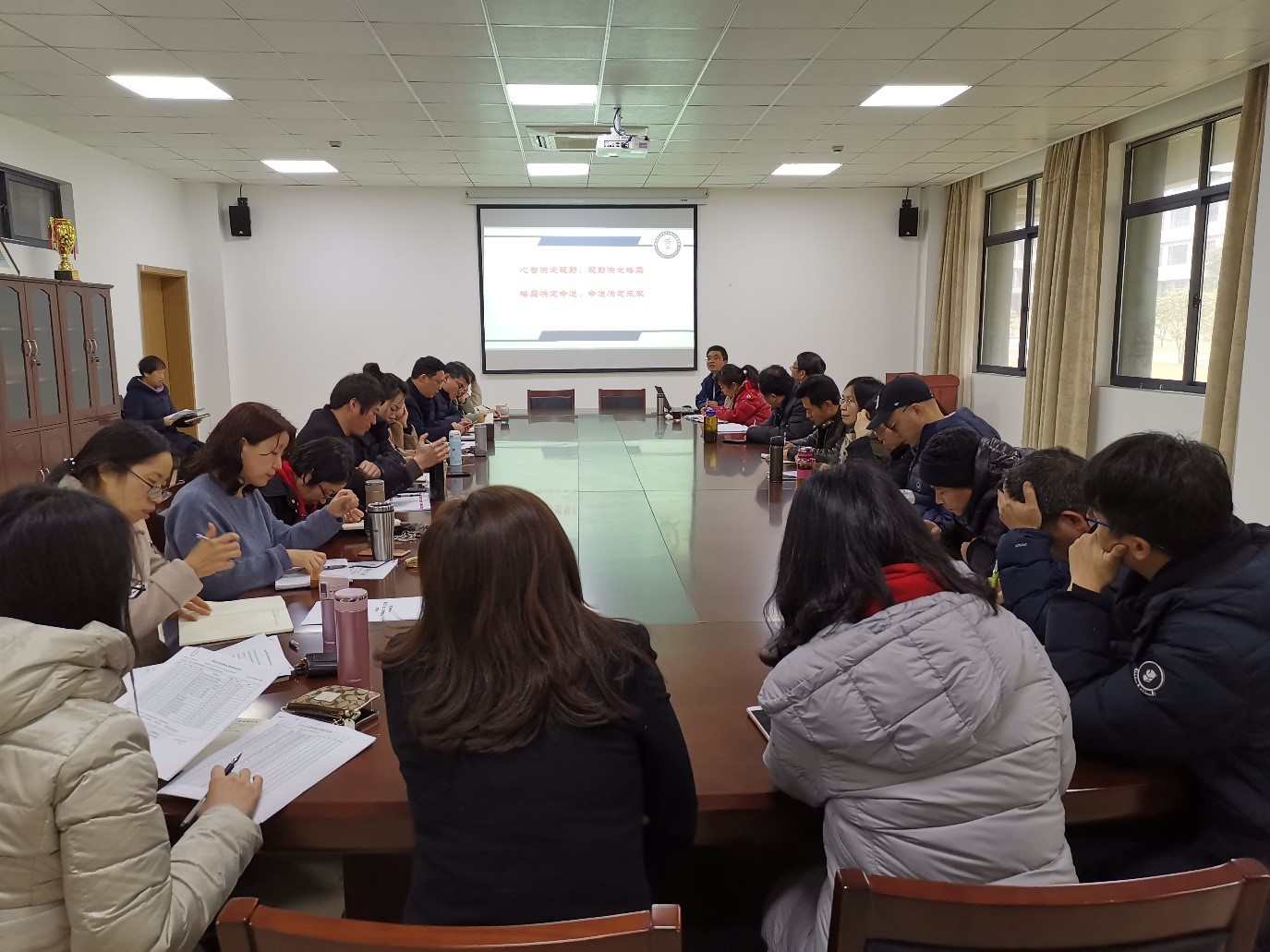 会议由党总支书记谭建刚主持,许才明副经理和董敏华副经理主讲。会议的内容有三项,一是就公司2019年重点工作进行动员和布置,二是围绕公司新修订各类方案的意见征求稿展开讨论,三是沟通和布置教研室年度工作目标任务。