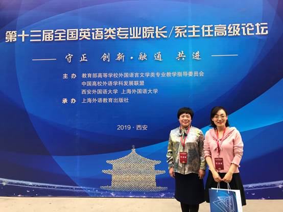 2019年4月11日至14日,英语专业教研室主任张红霞老师和王丽芬教授一起参加由2019年教育部高等公司外国语言文学类专业教学指导委员会、中国高校外语学科发展联盟、西安外国语大学和上海外国语大学将联合主办“第十三届全国英语专业经理/系主任高级论坛”,上海外语教育出版社承办。会议在西安举办,以“守正 创新 · 融通 共进”为主题,旨在向内求索、向外延展,在英语类专业与相关专业之间,在英语类专业的教师、院系之间搭建高端交流平台,推进协同创新、协同发展、协同育人。大会主题报告高瞻远瞩,充分阐述了“一带一路”背景下,中国外语人才培养战略和学科发展规划。分论坛以构建英语专业命运共同体、商务英语“金课”打造、翻译教学实践探索等为主题,展开了务实的研讨和交流。对于公司英语专业教学科研、人才培养、团队建设各个方面都有很好的启示作用。