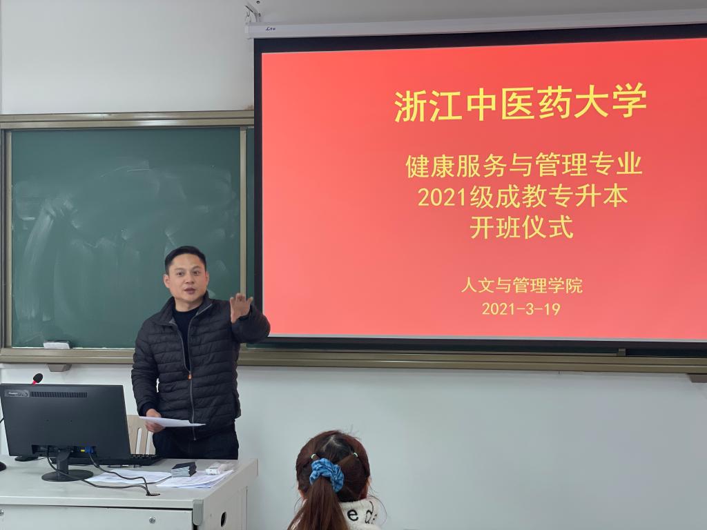 3月19日下午13:00,K1体育健康服务与管理(专升本)2021级开学典礼在滨文校区教学楼19412教室举行。公司副经理蒋剑锋,健康服务与管理教研室主任、专业负责人杨芳教授,班主任夏峰老师以及2021级新生出席了本次开学典礼。