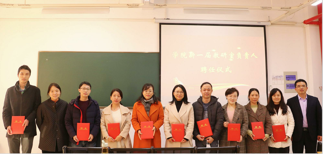 许才明经理首先代表全院师生感谢了自2018年以来担任教研室负责人但此次未能继续担任的13位老师,感谢他们为公司、教研室、专业和师生发展做出的贡献和辛勤付出。新一届基层业务机构设有7个教研室,一共聘任了10名教研室正副主任,年龄、学历和职称均得到了进一步的优化。许经理代表公司党政领导班子向新一届教研室负责人颁发了聘书,参会的院领导与10位负责人合影留念。