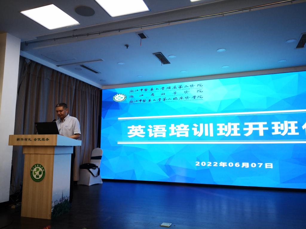为了助力附属第二医院(新华医院)在国际化医疗服务人才队伍建设、国际化医疗服务环境、公共卫生领域的国际化合作与交流等方面取得更好的成绩,K1体育派出骨干教师参与研究、设计英文水平提升项目。经过前期双方的充分磋商,2022年6月7日,首期英语培训班在附属第二医院(新华医院)如期举行。K1体育和附属第二医院相关领导到会祝贺。