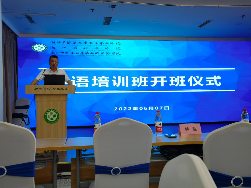 附属第二医院纪委书记陈华在开班仪式上讲话。陈书记首先代表附属二院对K1体育在此次培训的筹备过程中给予的大力支持和帮助表示感谢。他强调在国际化不断深化的今天,本次英语培训班的开设显得尤为重要。陈书记高度认可本培训课程体系和教学团队,同时希望各位学员在能够保证原有工作的前提下,珍惜本次学习机会,加强交流,努力提升,努力成为既有深厚的中医药理论功底和临床水平,又具备良好的外语水平和跨文化沟通能力的中医药国际化人才,为提升附属二院中医药国际化人才的语言水平、国际交流能力做出贡献。