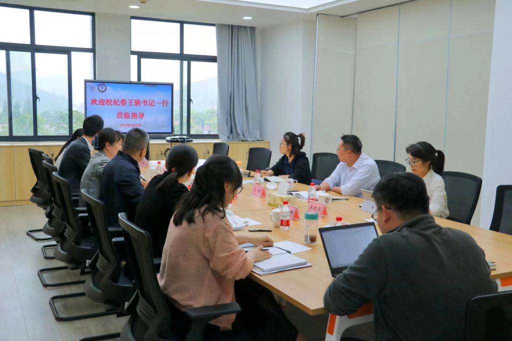 首先,林敏经理代表公司党政领导班子对校纪委王轶书记一行莅临调研指导表示热烈欢迎,同时衷心感谢公司纪委对公司工作的关心和指导。随后,梁泽华副书记(主持工作)重点围绕公司2023年以来全面从严治党工作、目前工作中存在的主要问题和下一步工作举措等方面进行了专题汇报。她强调,要强化组织领导,健全工作机制,开展教育引导,做好监督检查,推动公司全面从严治党走深走实。俞慧娜副书记(兼纪委书记)从“立清雅之戒、思清雅之意、树清雅之风、品清雅之韵”等几个方面,详细介绍公司“风采杏廉,清雅文管”廉洁文化品牌,将廉洁教育融入到公司各项工作中,不断推进清廉公司建设。公司领导班子其他成员就分管的工作向王书记进行了汇报,王书记认真听取汇报,不时提问,就具体工作与大家深入交流和沟通。