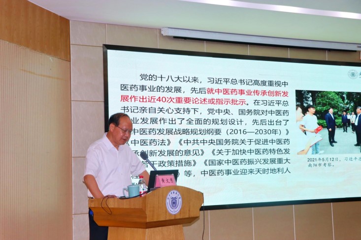 之后,黄文秀书记为文管师生做了生动而深刻的开学第一讲。黄书记带领大家深入学习领会习近平总书记关于中医药重要论述的深刻内涵,向师生展示了公司一步一个脚印的发展历程,以及新时代公司建设特色鲜明、守正创新的一流中医药大学的战略部署,鼓励文管学子传承与发展中医药,争做有理想、敢担当、能吃苦、肯奋斗的新时代好青年。