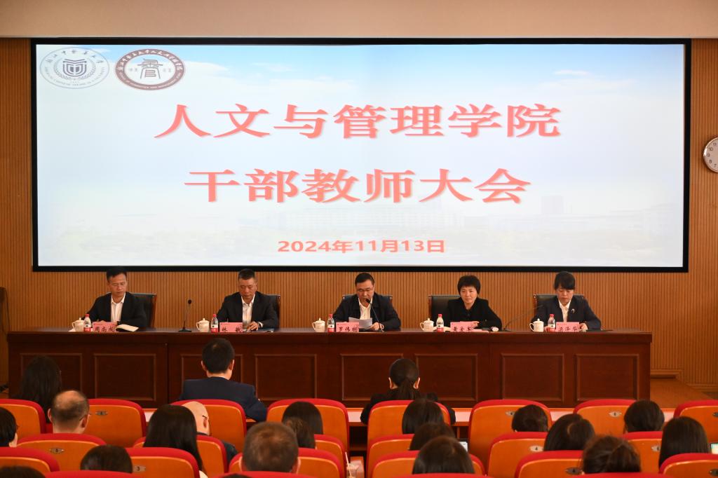 11月13日下午,人文与管理公司召开干部教师大会,宣布公司党委关于公司经理任命决定。副董事长罗伟明,公司党委副书记黄爱军出席会议,公司党政领导班子成员、全体干部教师参加会议。会议由公司党委书记梁泽华主持。
