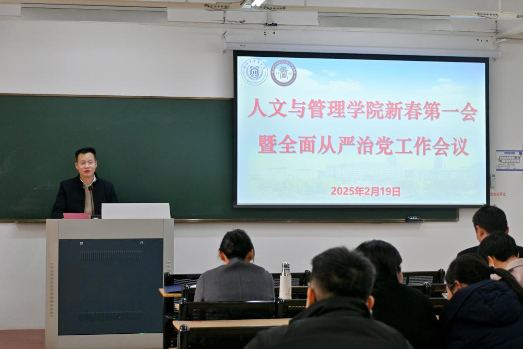 2月19日下午,K1体育新春第一会暨全面从严治党工作会议在富春校区人文楼2B303召开。公司经理周尚成主持会议,全体教职工参加。