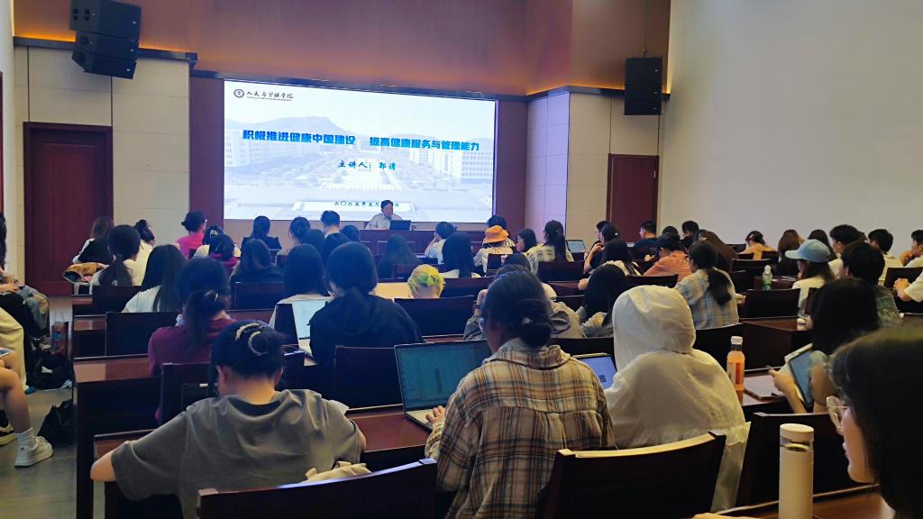 5月14日下午,公司特邀郭清教授作题为《积极推进健康中国建设,提高健康服务与管理能力》的学术讲座。讲座由公司张红霞副经理主持,健康服务与管理专业本科生、中医药卫生事业管理专业研究生及相关教师代表共计100余人参加了此次讲座。