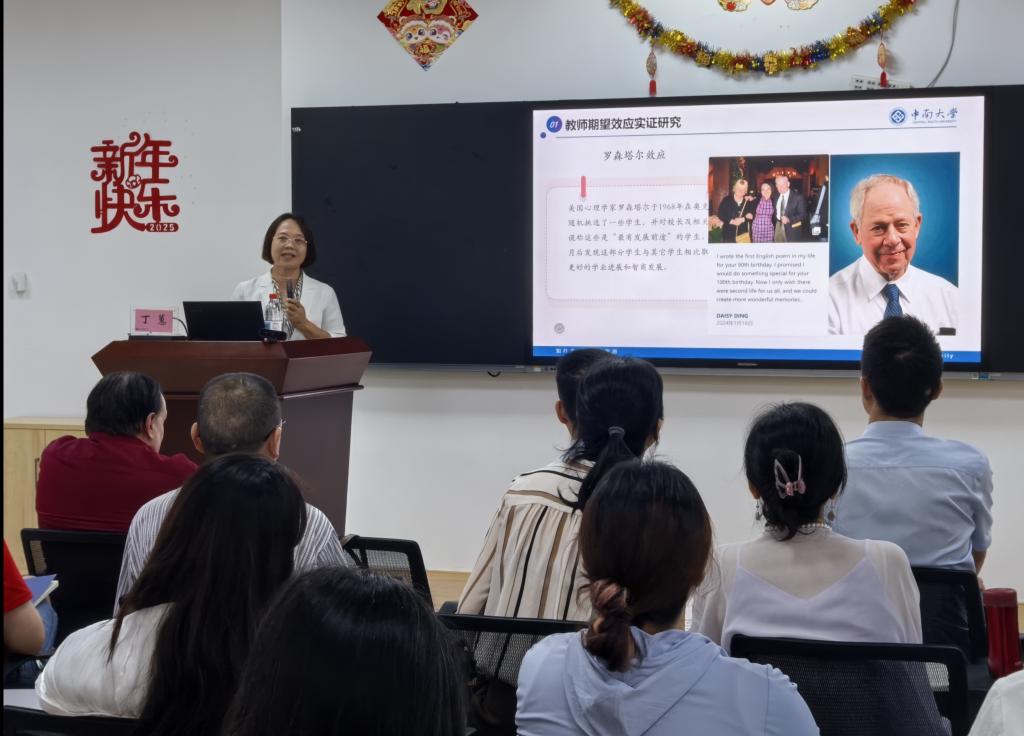 随后,中南大学丁蕙教授以“SSCI教育类实证研究论文——从选题到发表”为题,结合自身丰富的科研实践经验,系统阐述了SSCI论文从选题设计、研究方法到投稿发表的全过程。他通过生动的案例解析,分享了在公司产品实证研究领域的心得体会,为师生们提供了宝贵的论文写作与发表指导。