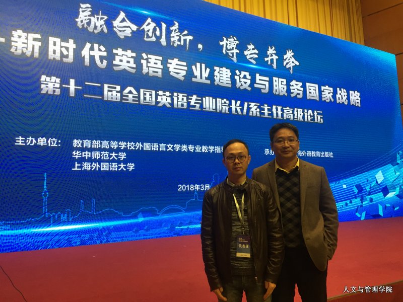 2018年3月22-25日,公司董敏华副经理和英语专业教研室副主任徐宁骏老师应邀参加了在武汉举行的以“融合创新,博专并举——新时代英语专业建设与服务国家战略”为主议题的第十二届全国英语专业经理/系主任高级论坛。本届论坛由教育部高校外国语言文学类专业教学指导委员会、华中师范大学和上海外国语大学联合主办,上海外语教育出版社承办。来自全国各高校的外语公司经理、英语系负责人、骨干教师代表共计500余人参加了此次论坛。