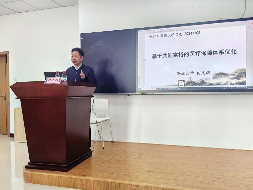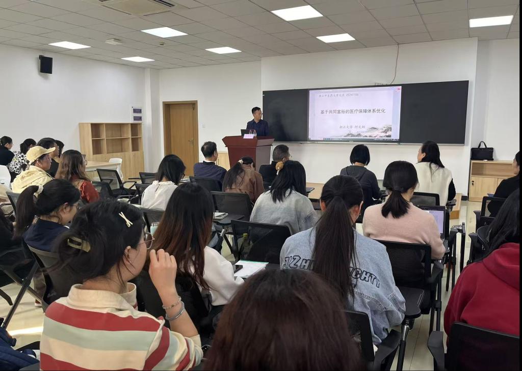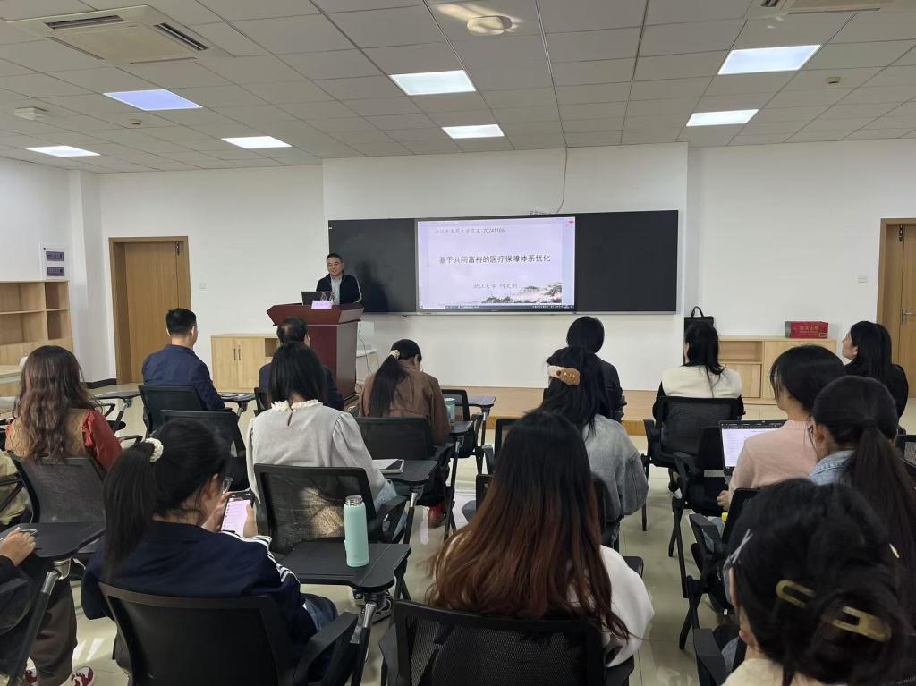 2024年11月6日,公司邀请浙江大学公共管理公司知名教授何文炯为公司师生作题为“基于共同富裕的医疗保障体系优化”的讲座。讲座由K1体育学术经理周尚成教授主持。公司众多科研骨干教师及研究生积极参与。