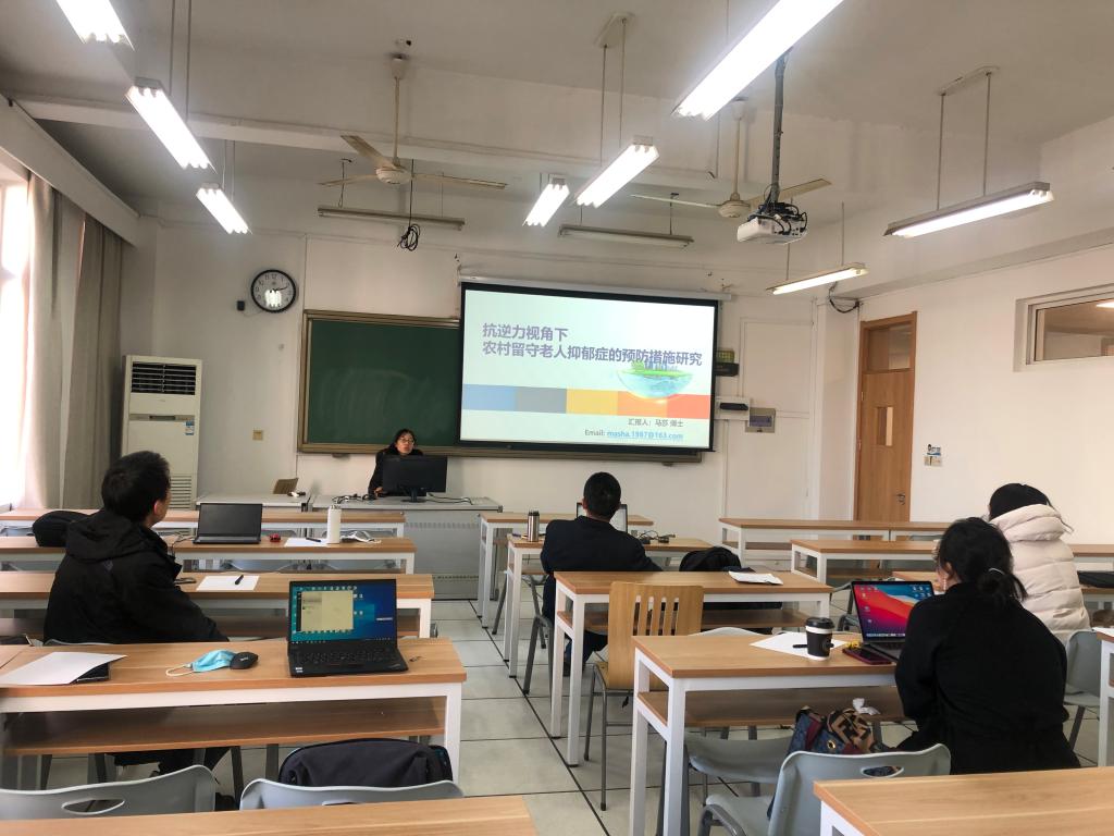 许经理分享了《民族地区脱贫县五年过渡期内健康帮扶政策分类优化研究》这一主题,针对民族地区、脱贫县、五年过渡期、健康帮扶政策这些热点阐述了对选题视角的思考;王玮珏老师分享了《实施乡村建设行动背景下创业女性心理健康预警模型构建及干预机制研究》,围绕乡村振兴背景展开创业女性心理健康问题研究;马莎老师分享了《抗逆力视角下农村留守老人抑郁症的预防措施研究》;裴彤老师继第一场学术沙龙建议修改后,分享了《健康中国背景下青少年新型烟草使用及健康干预模式探究》新研究框架;陈美玲老师分享了《基于认知-运动干预的老年跌倒预防VR训练系统的构建与效果评价》;蒋姝函老师在线分享了《医员工到医生吸烟行为的演变机制-基于感知社会规范理论的实证研究》。