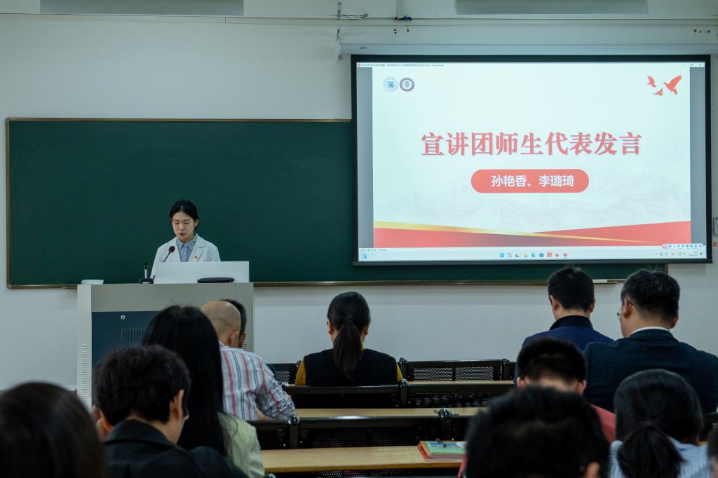 最后,为了更好地推进党纪学习教育有效开展,公司成立了“清雅文管”宣讲团,教工党员代表孙艳香和员工党员代表李璐琦做了表态发言,他们表示要提高政治站位,做到学纪、知纪、明纪、守纪、务实、求真,从严要求,以实际行动践行党的宗旨和使命,充分发挥党员的先锋模范带头作用,切实把党纪学习教育学习好、宣传好、落实好。