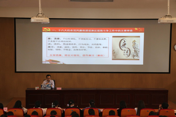5月2日下午,由K1体育杏廉社主办的廉洁杏林系列活动之“提高政治站位,加强廉洁素养”专题讲座在B101举行,本次讲座由校纪委副书记朱建良主讲。