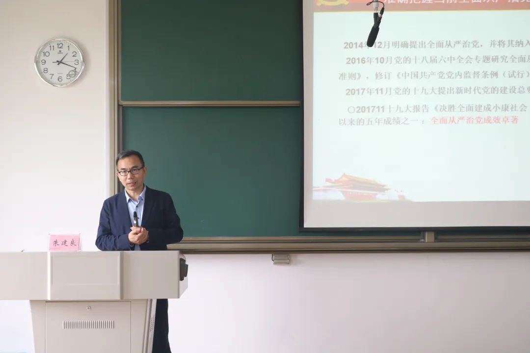 朱建良从准确把握当前全面从严治党和党风廉政建设形势、十八大后在党风廉政建设和反腐败斗争工作中的主要举措、清廉校园建设——员工廉洁素养培养三大方面展开详细阐述,他结合真实案例,深入浅出,条理清晰地将加强党的党风廉政和纪律建设娓娓道来。使积极分子们明晰道德、监督、法律是廉洁自律的外在保障,严以修身是廉洁自律的内在要求。他强调,入党积极分子要加强学习,提高个体“免疫力”,提升个人认知能力和道德水平,构筑廉洁屏障,为个人自身发展和社会做出贡献。