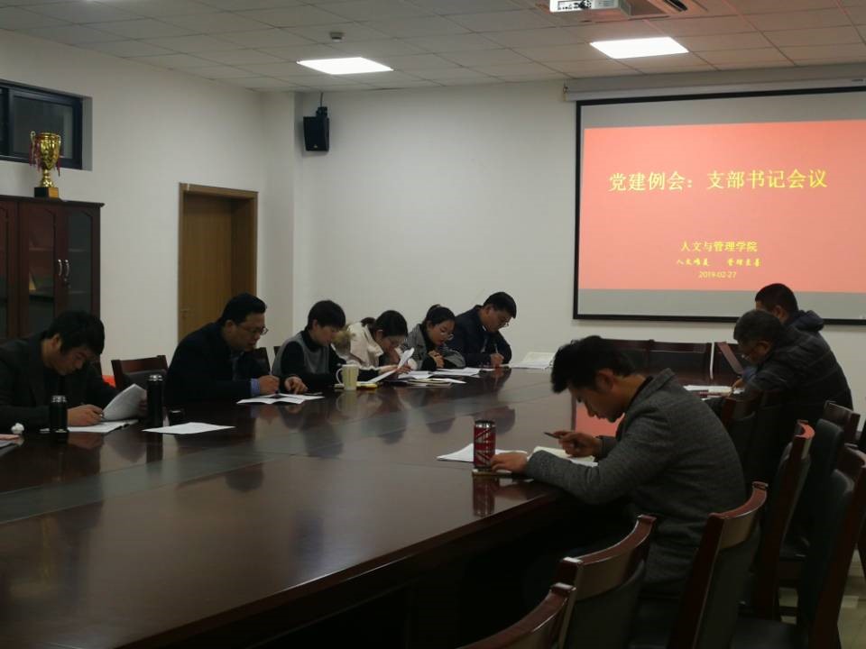 近日,公司党总支在人文楼2A104召开新学期党建思政工作例会。会议由党总支书记谭建刚主持,专题部署2018年度基层党组织组织生活会和民主评议党员工作,组织员郑国庭和各党支部书记参加本次会议。
