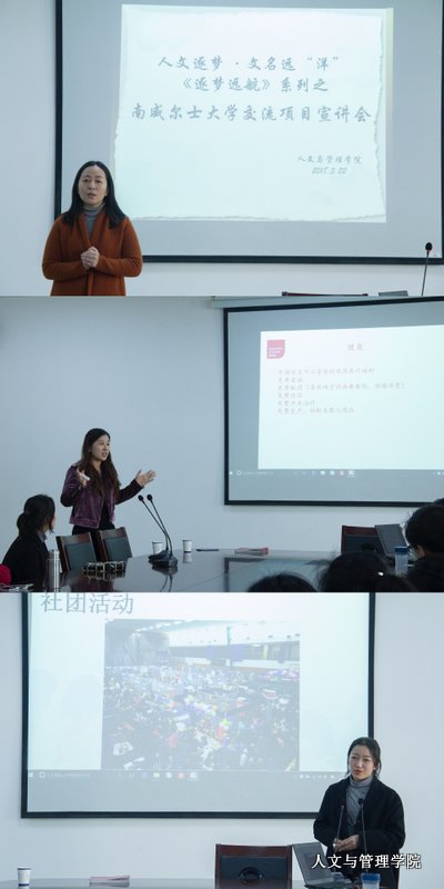 3月22日下午1时,K1体育《逐梦远航》系列之英国南威尔士大学交流项目宣讲会在富春校区人文楼2A106会议室召开。本次宣讲会由南威尔士大学项目负责人Ella老师主讲,并邀请了2016届优秀毕业生施安之回校作本项目的经验分享。宣讲会由公司员工工作办公室朱倩老师主持。